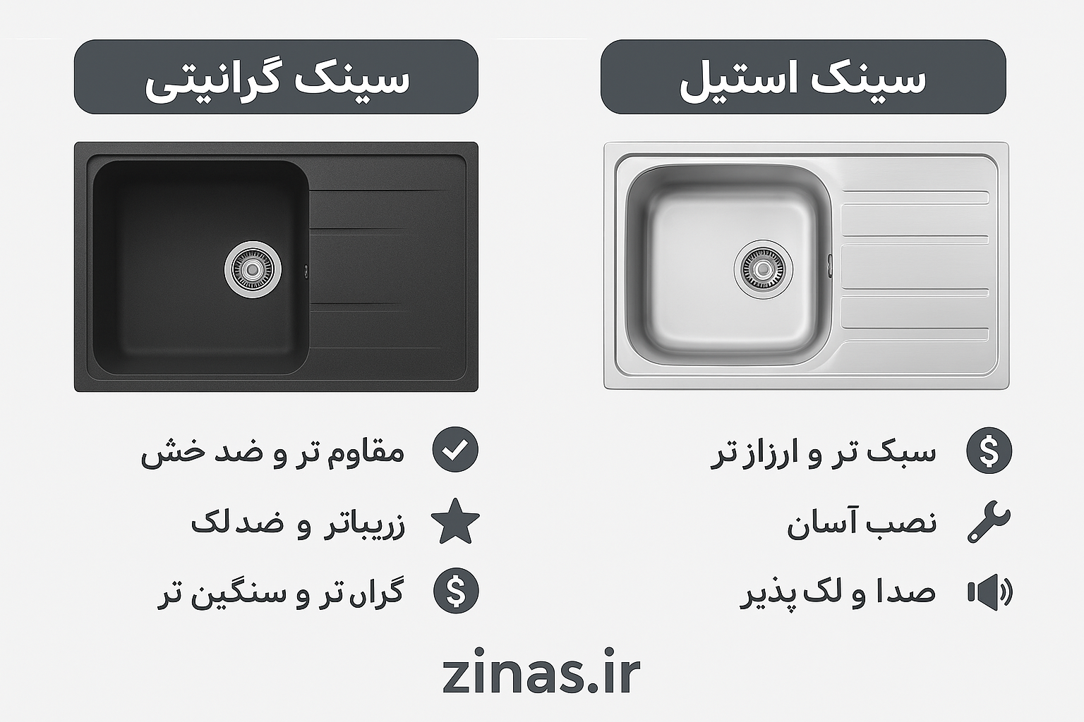 نتیجه: از نظر دوام و مقاومت، سینک گرانیتی برتر است.